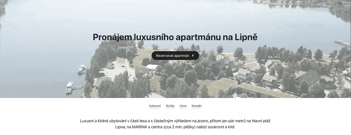 Jednostránkový prezentační web v češtině a angličtině s nabídkou pronájmu apartmánu obsahuje bohatý vizuální materiál. Ukazuje okolí apartmánu i jeho ...